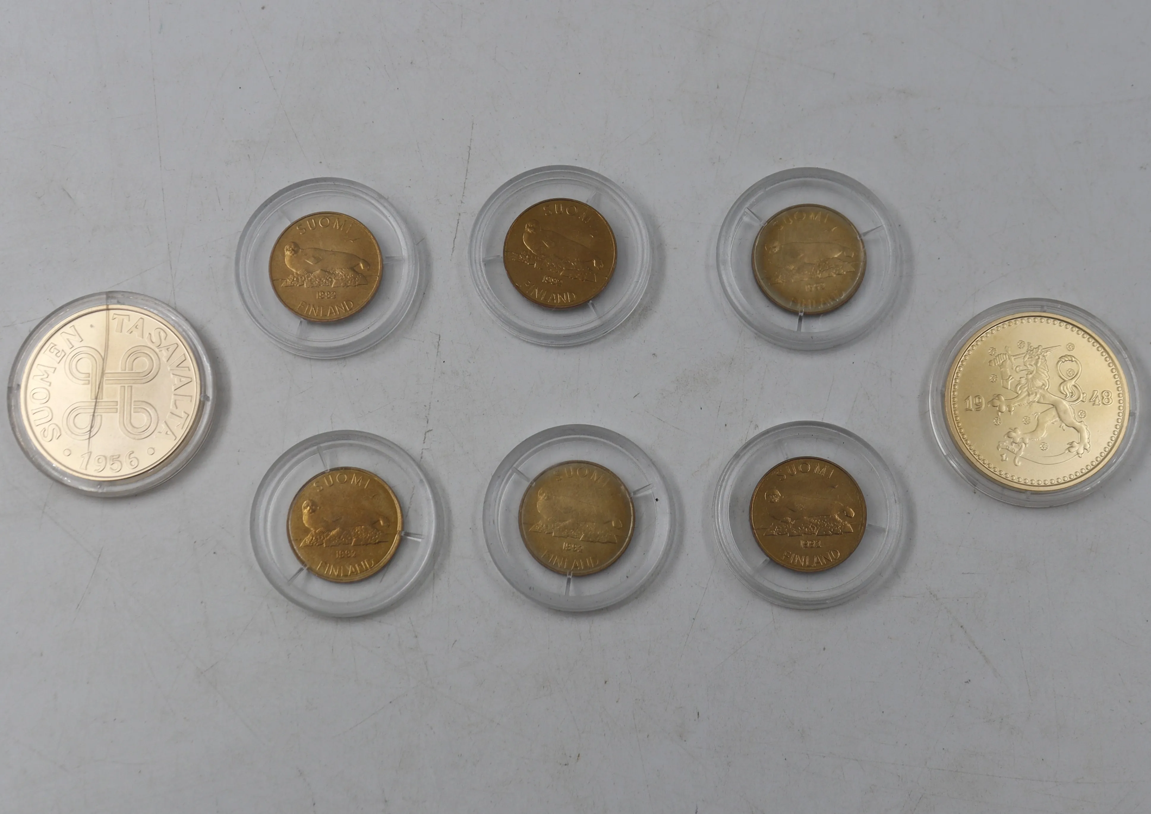 29. 1 mk rahat 2 kpl 1956, 1948 ja 5 mk rahat 6 kpl 1992