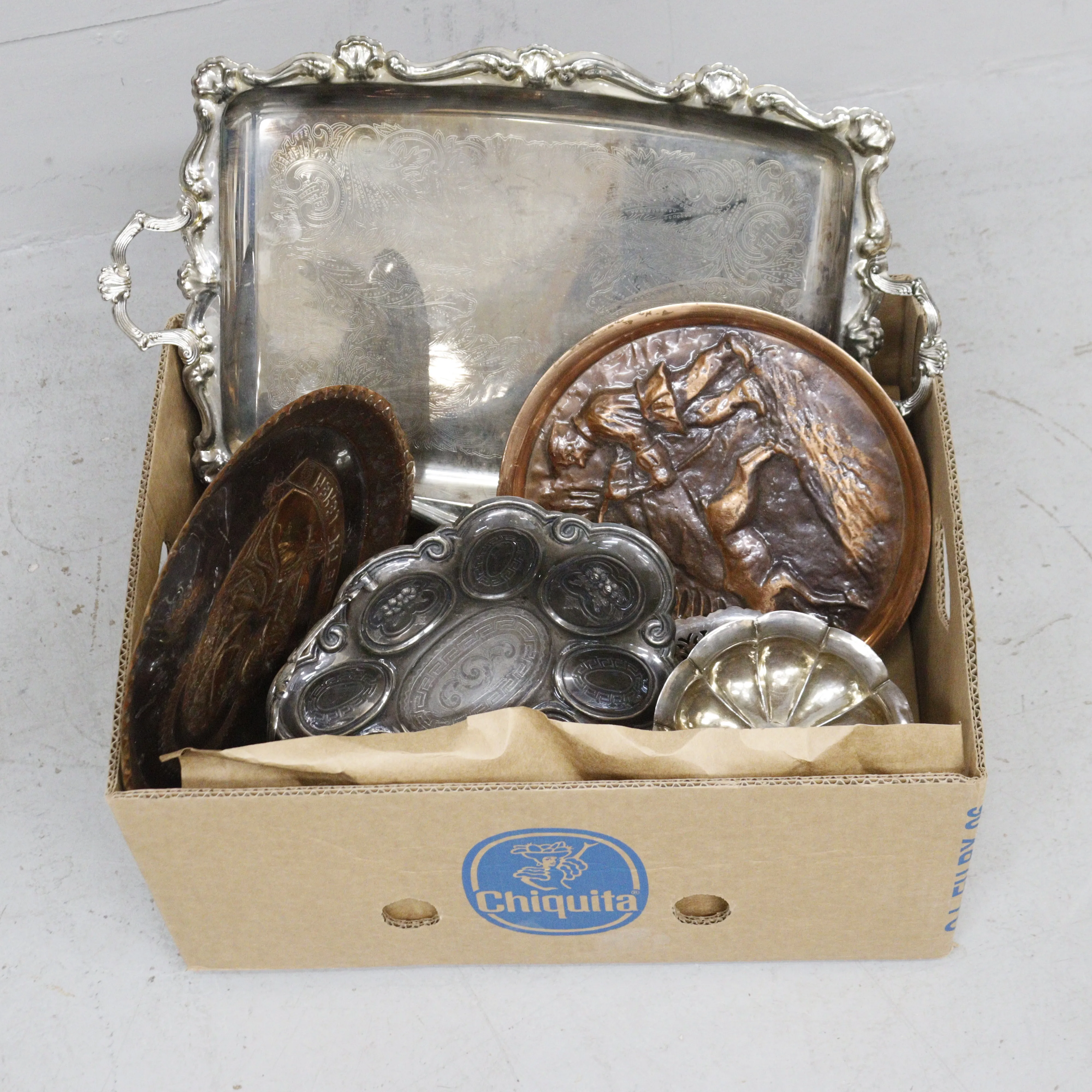 267. alpakka tarjottimia ym laatikollinen