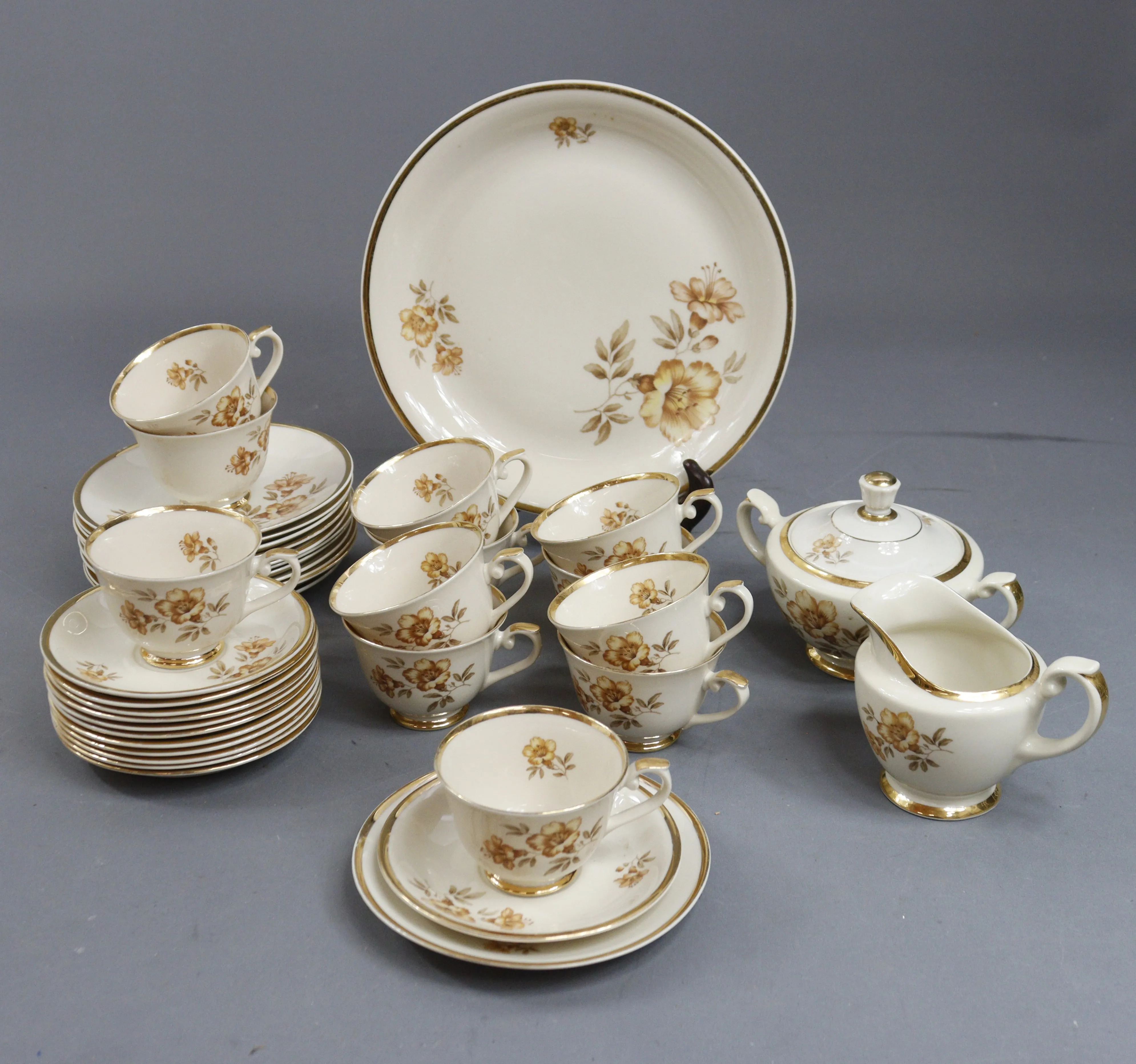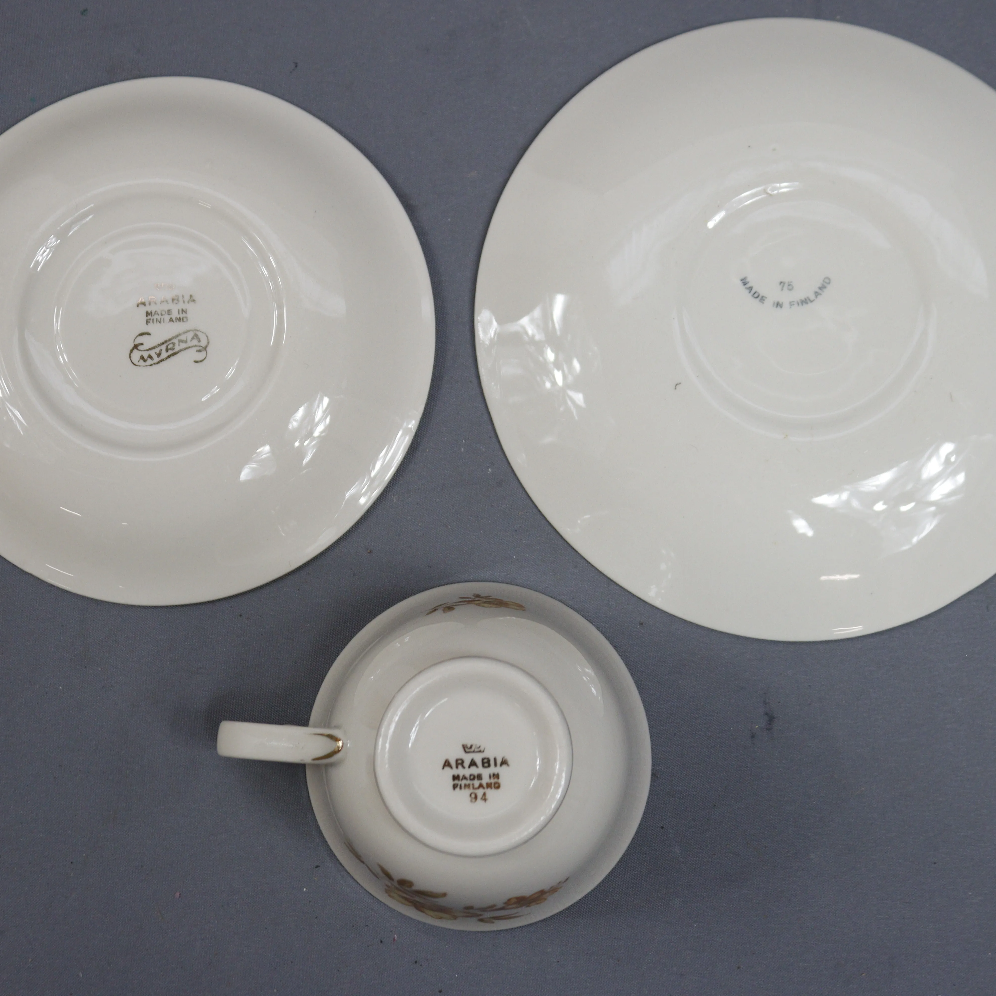 407. arabia, myrna astiasto 12 + 12 + 12, pullalautanen, sokerikko ja kermakko