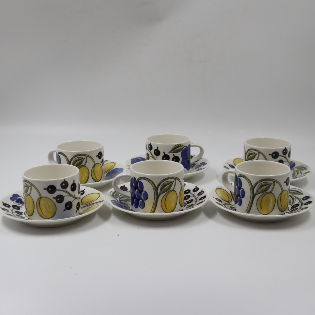 285. arabia paratiisi kupit ja tassit 6+6kpl. birger kaipiainen