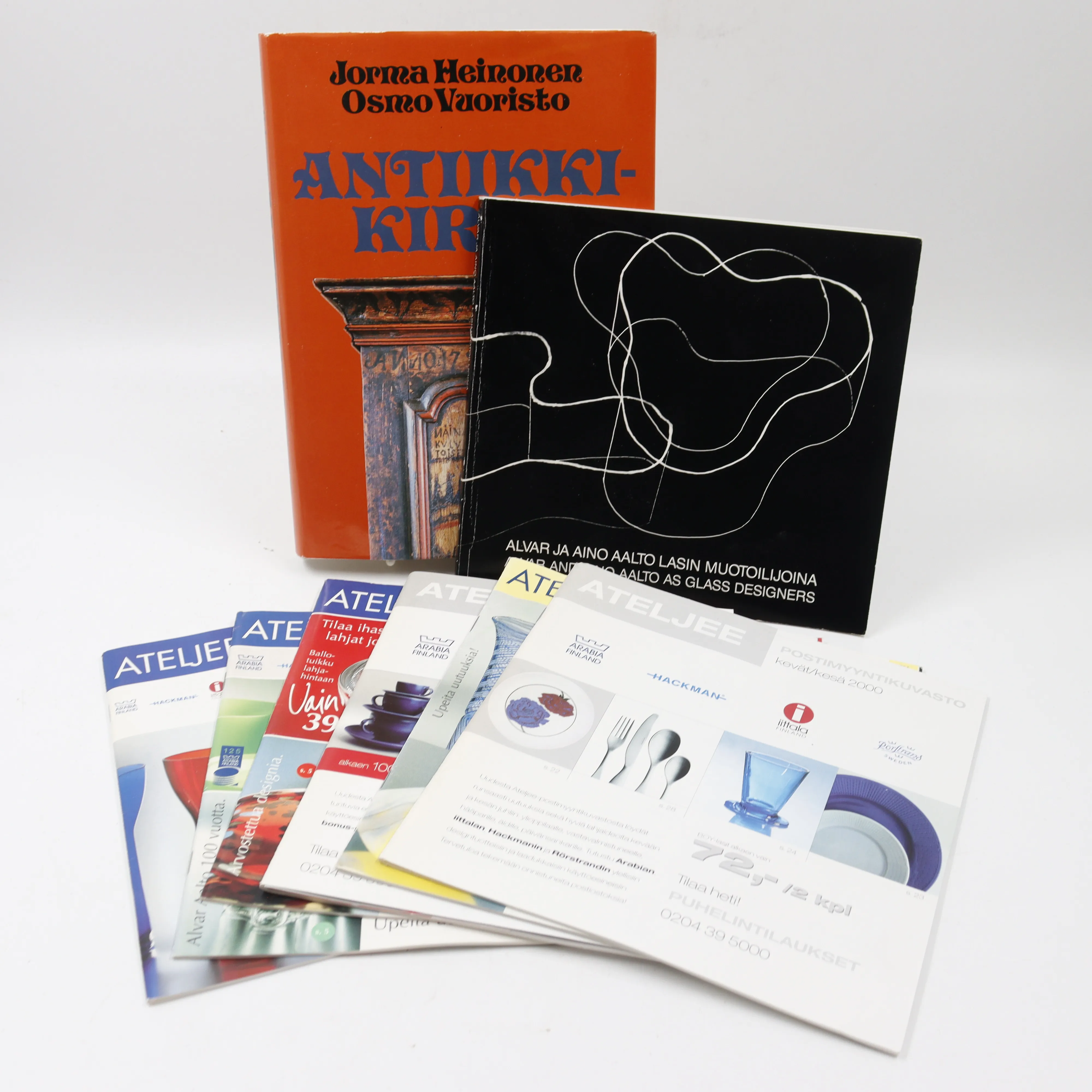 381. ateljee postimyynti kuvastot 6kpl, antiikki kirja ja aalto lasi kirja