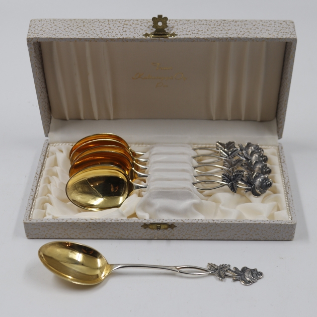 377. hopea 813 isot jälkiruokalusikat 6kpl, kaiverrukset