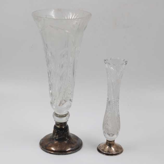 153. kristallimaljakot 2kpl hopea jalalla, ei kaiverrusta