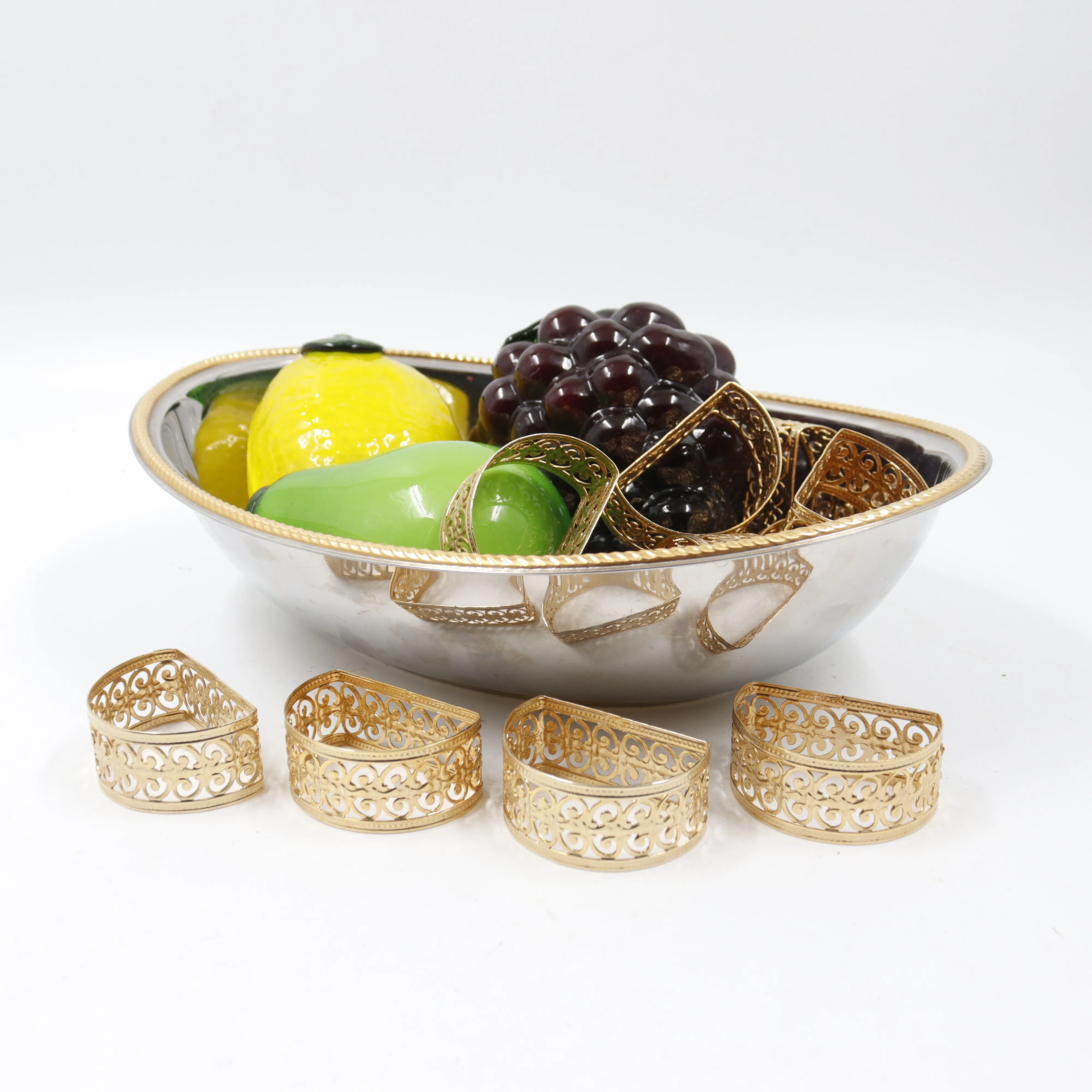 365. kullatut servetti pidikkeet 12kpl, vati ja hedelmät