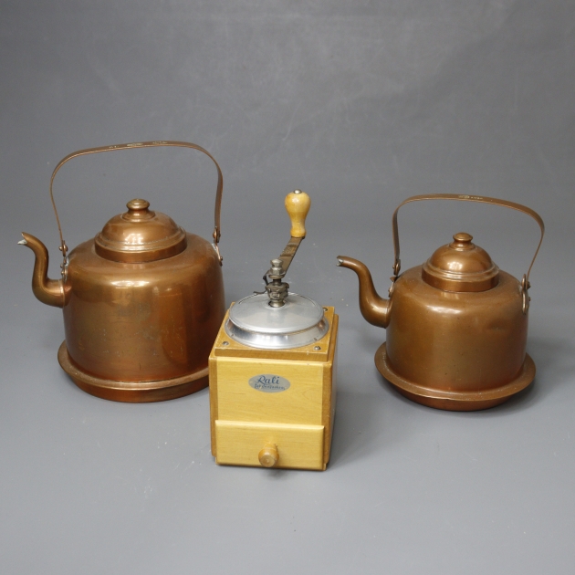 91. kuparipannut 2 kpl ja kahvimylly
