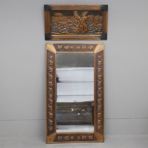 180. kuparitaulu ja peili,kuparikehyksellä