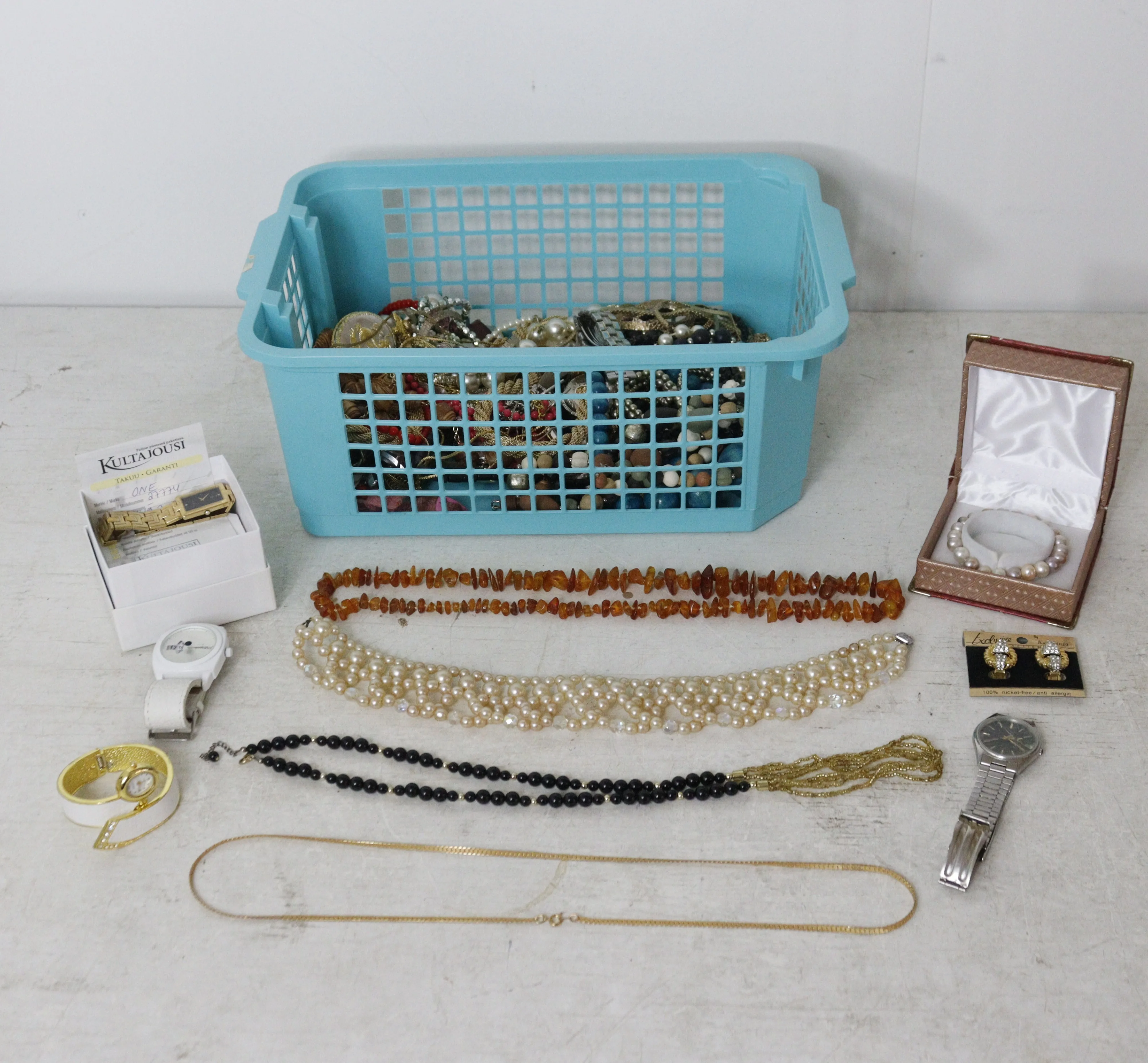 161. laatikollinen koruja ja kelloja (ei testattu)