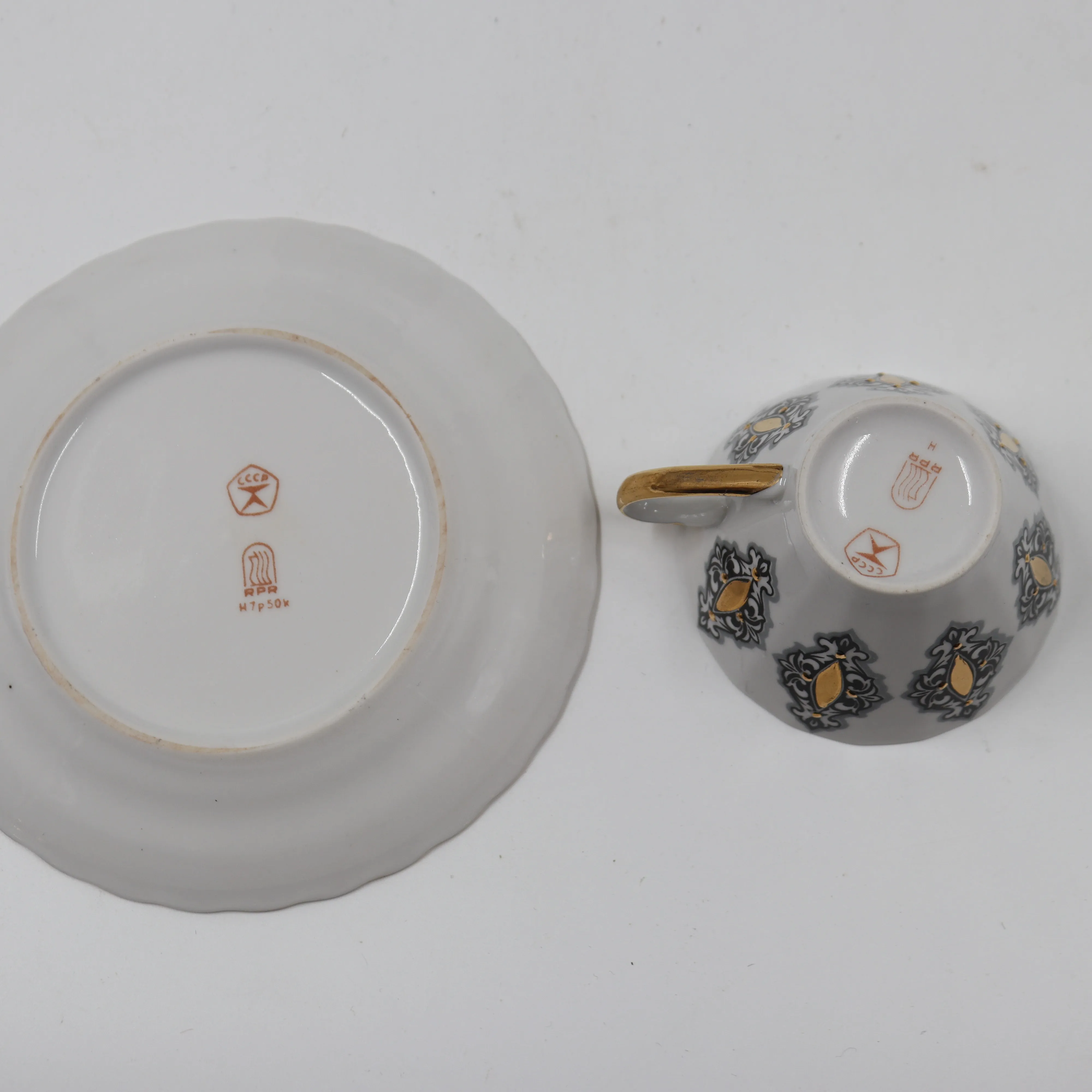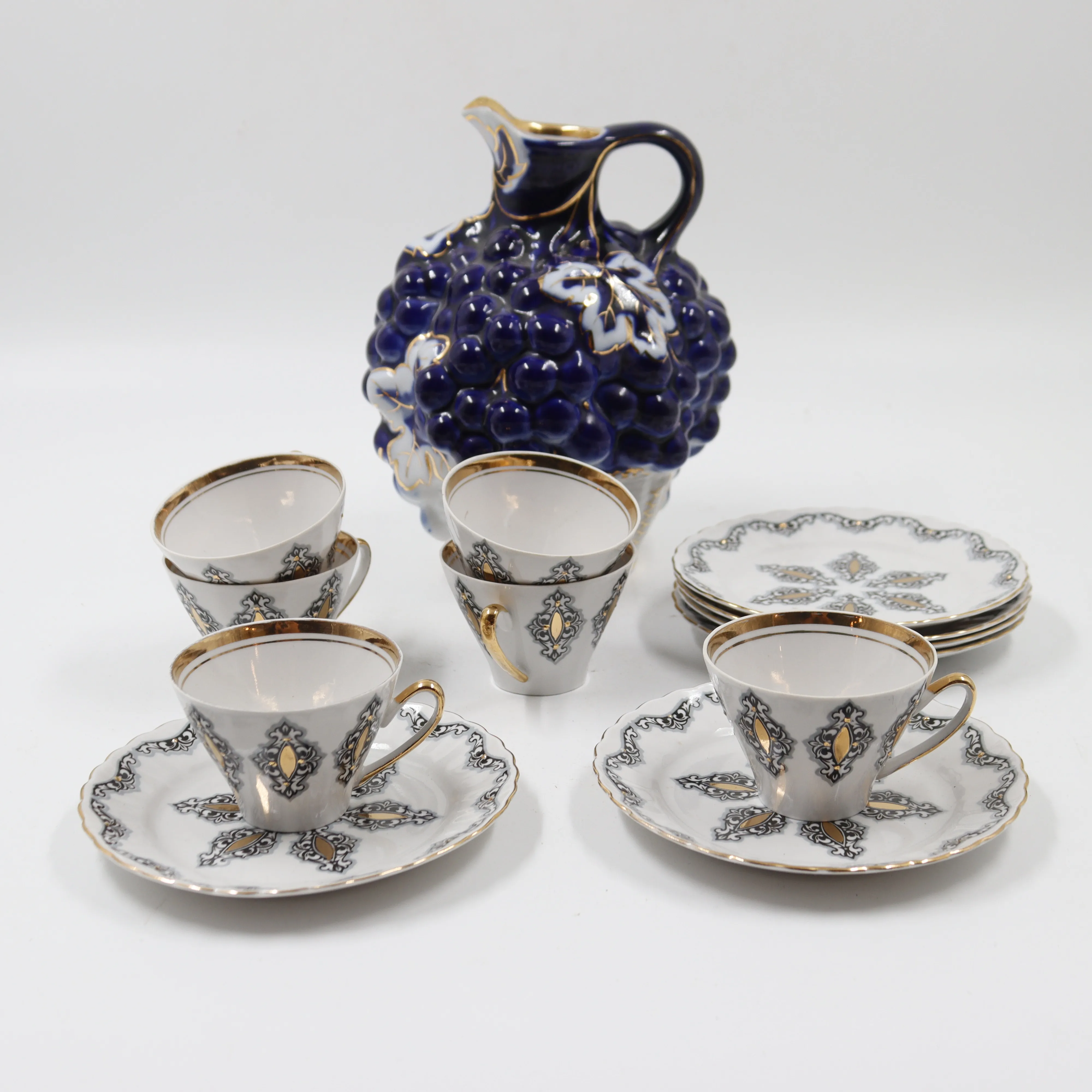 395. lomosov rypälekarahvi ja rigas posliinikupit+ alulautaset 6+6
