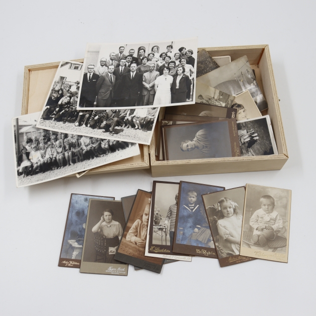 72. mustavalkoisia valokuvia ja visiitti kortteja, 45 kpl
