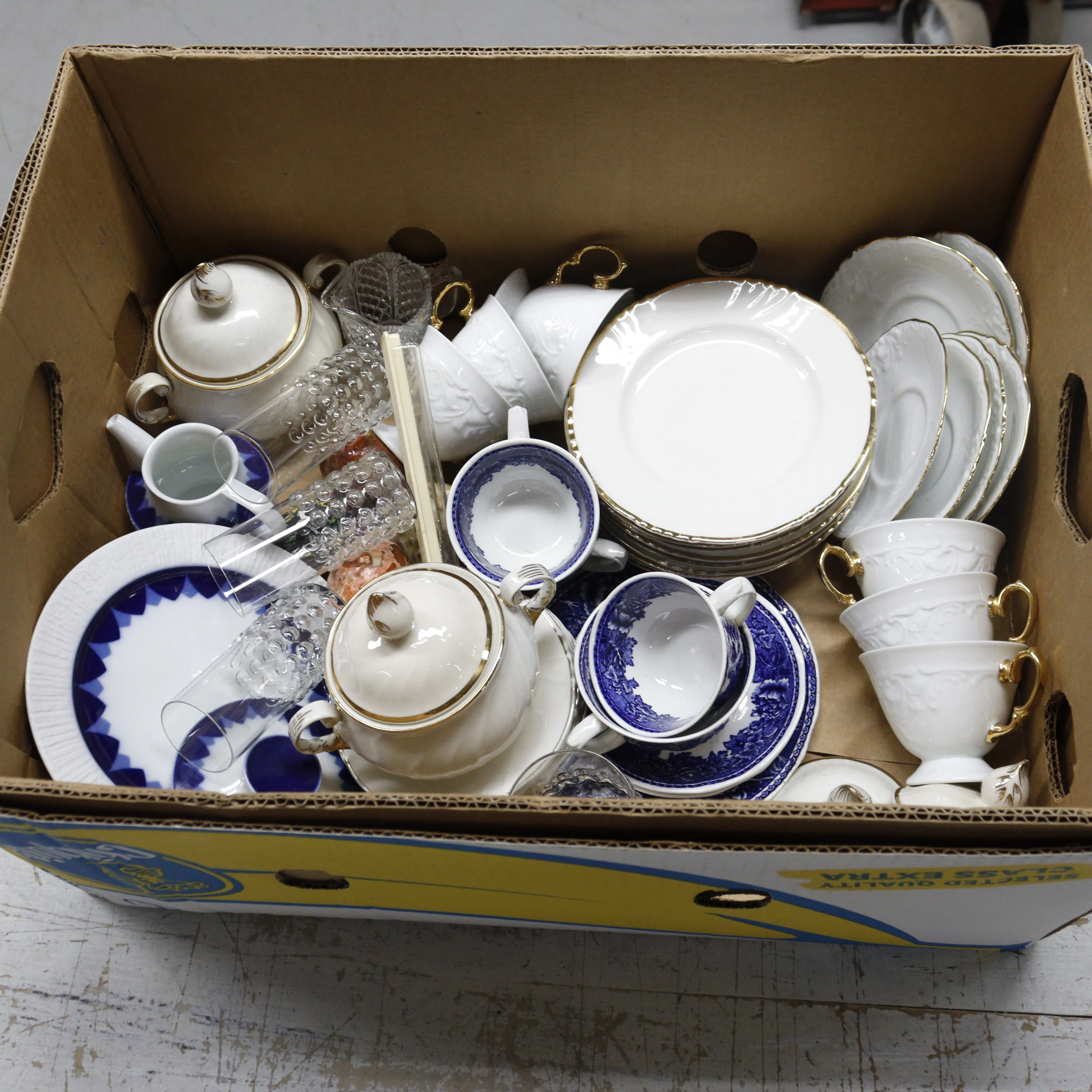 343. sekalaatikko posliinia ja lasia