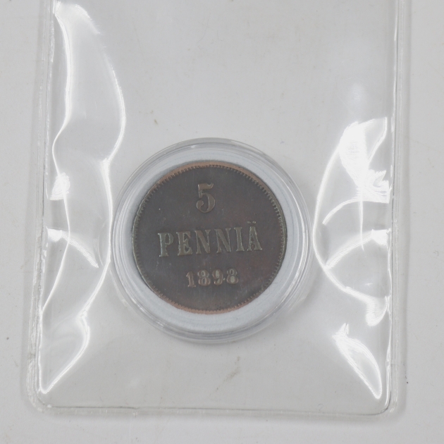 282. suomalainen kupari 5 penni, vm 1898