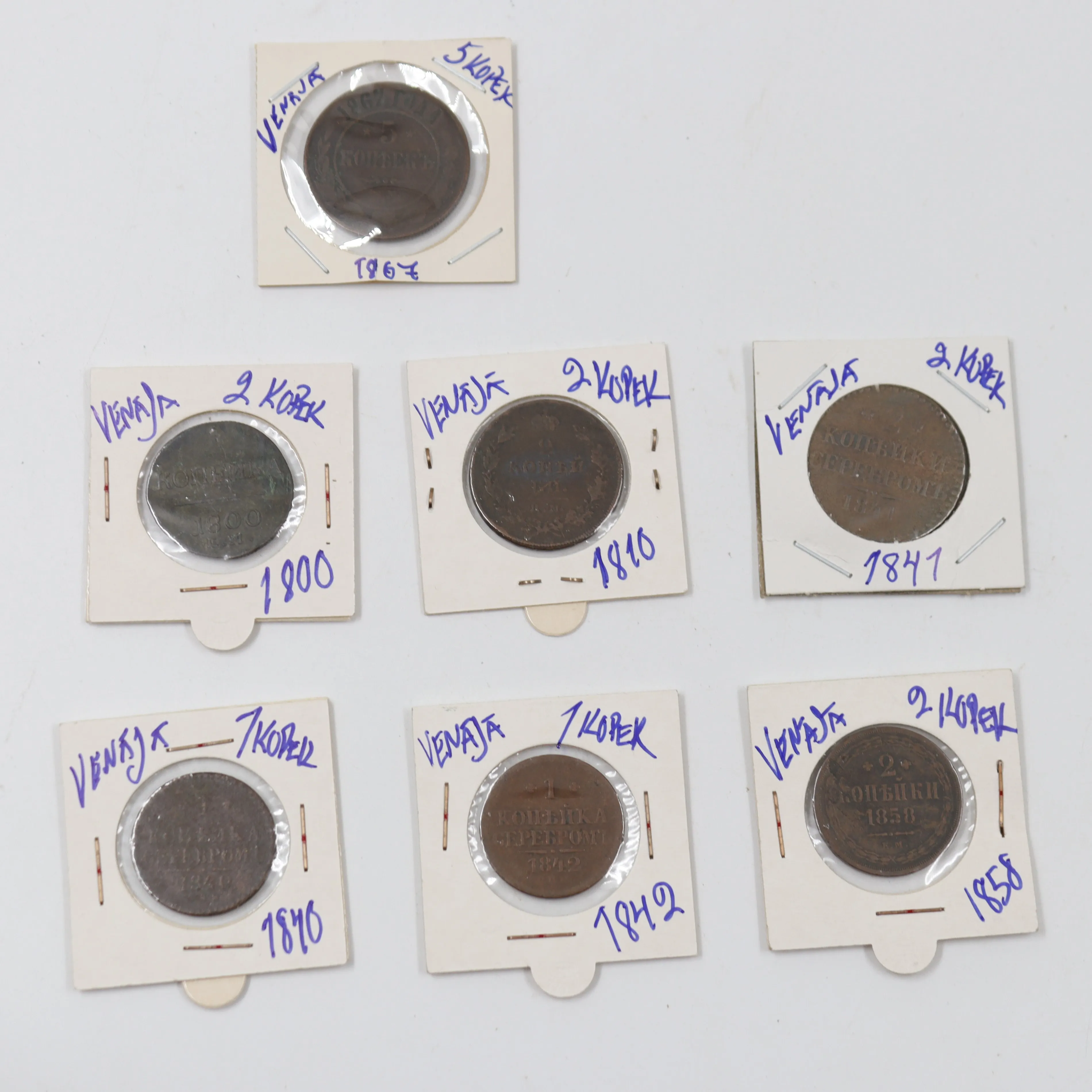 4 x 2 kopeekka, vm 1800, 1810, 1841, 1858