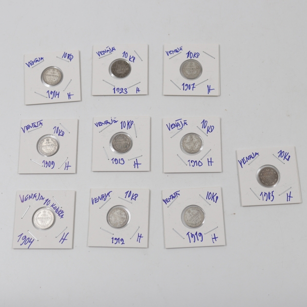 276. venäläisiä 10 kopeekka, hopea rahoja