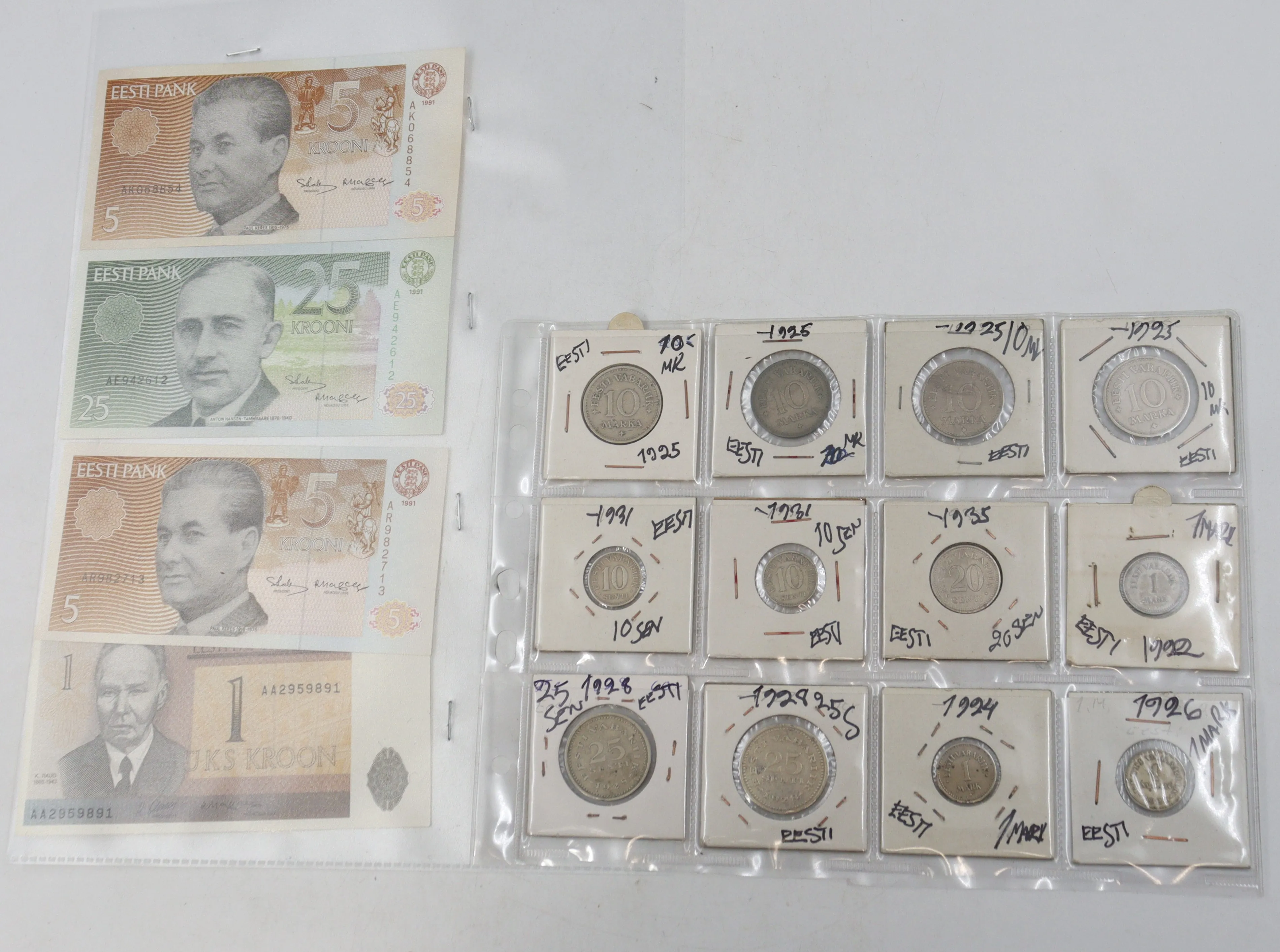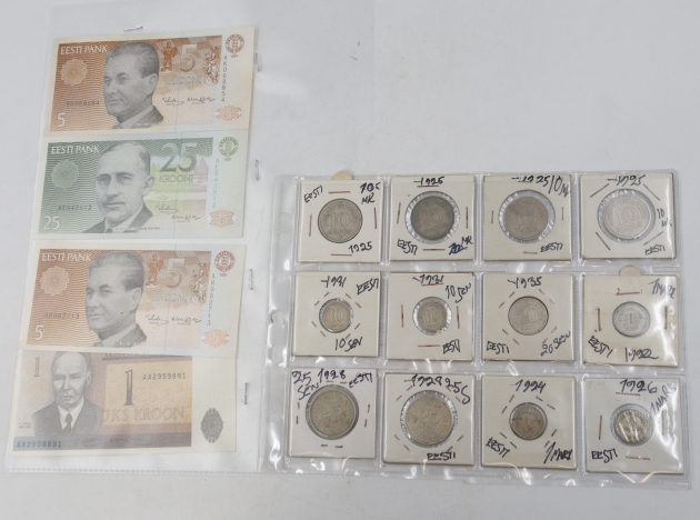 255. viro setelit 4 kpl 1991 ja kolikot 12 kpl 1922-1935