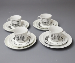 arabia, luvia kupit, tassit ja lautaset 4+4+4