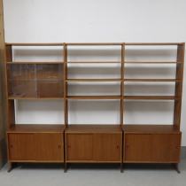 teak hylly 3osainen, lasivitriini ja alakaapit 3kpl