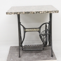 singer ompelukoneen jalka, kivipöydällä