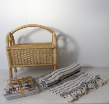 rottinki lehtikori, puuvilla viltti ja 8 kpl sisustus lehtiä