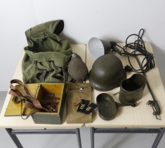 armeija tavaraa, lamppu, kypärä ym