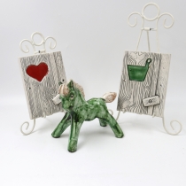 Posliini hevonen ja seinäkoristeita 2kpl