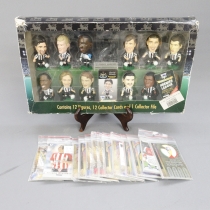 Erä jalkapallokortteja ja keräily figuureita alkuperäispakkauksessa